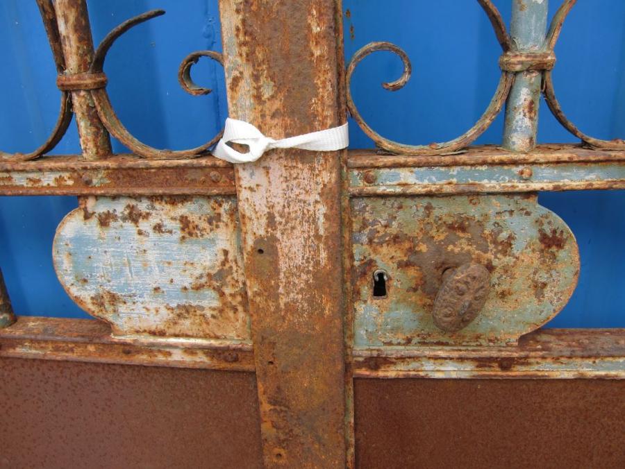 A pair of late 19th Century French gates. Overall width 178"/3m wide x 99"/2.5m tall Each gate 59"/1.5 wide x 99"/2.5m tall Very good original condition. Old restoration to the bases. £1400 plus vat Delivery arranged at cost.