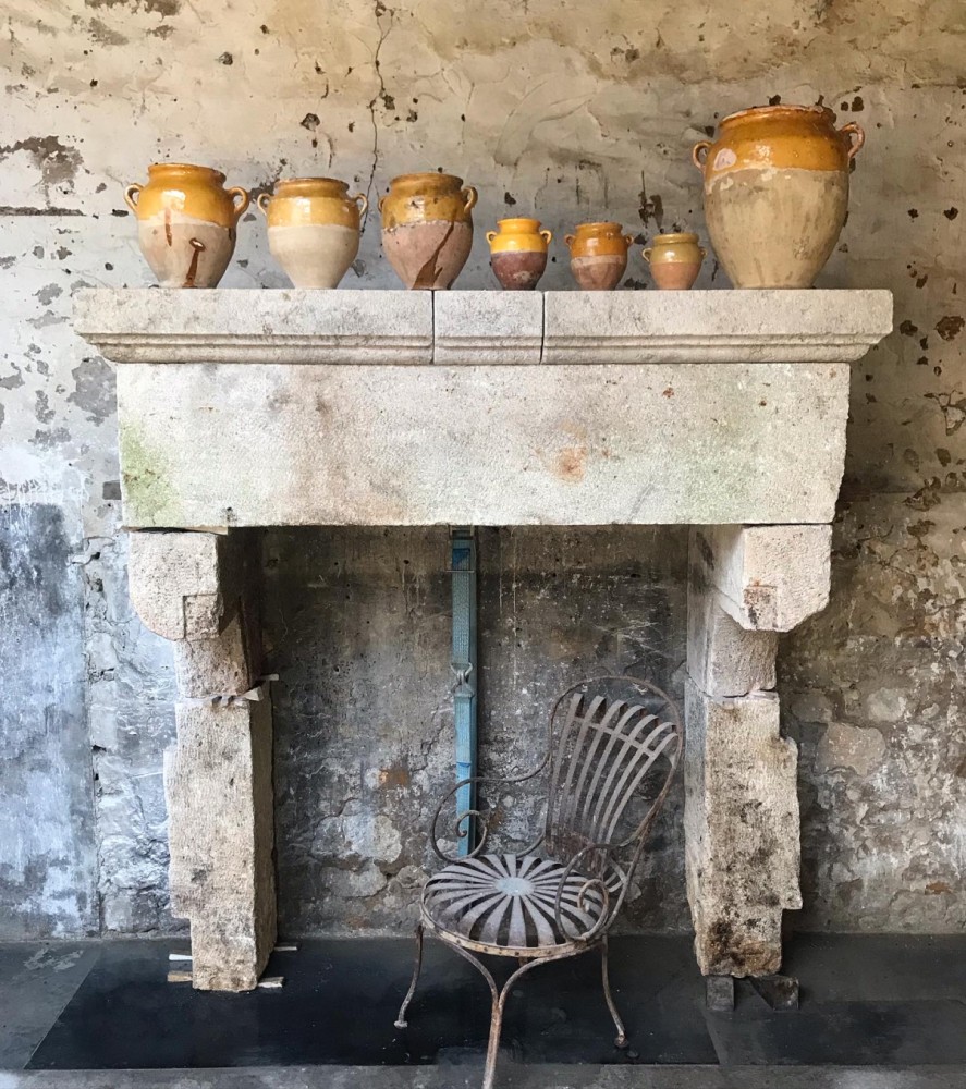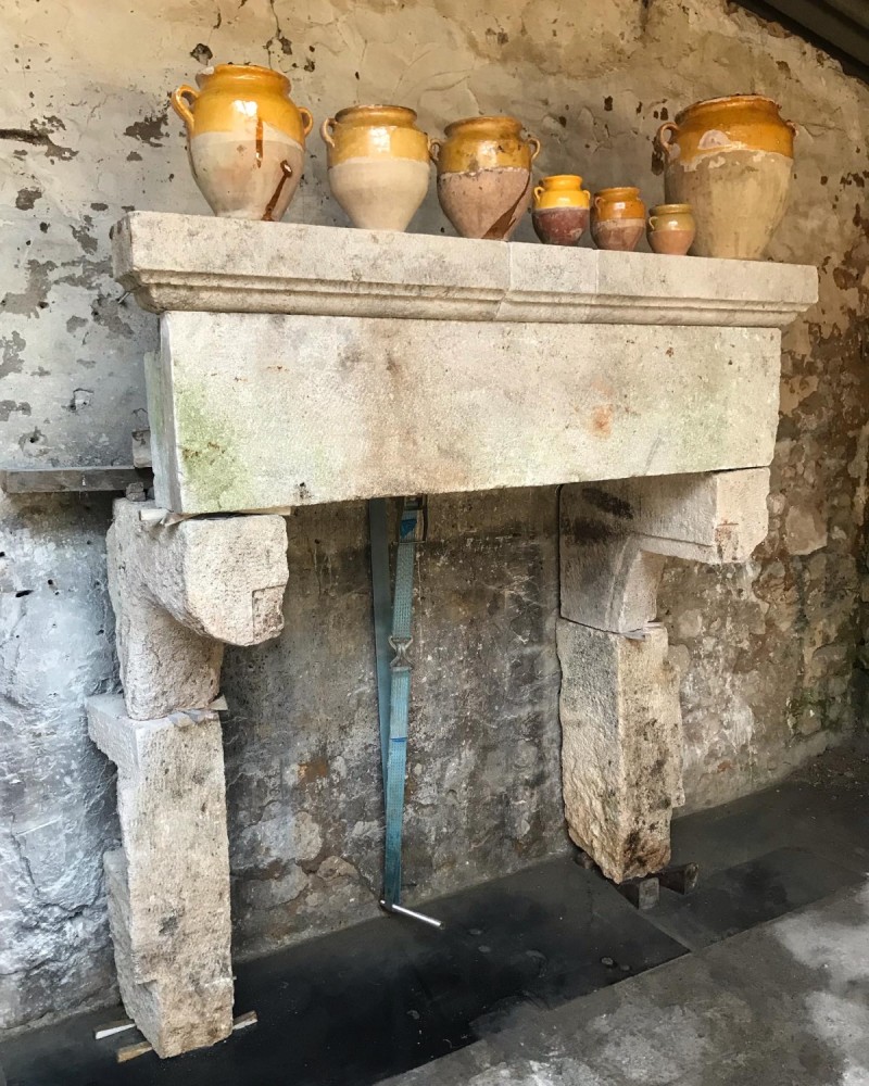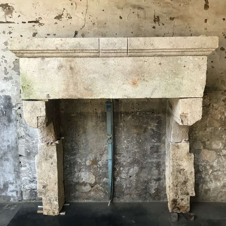 Large Rustic Antique Italian Stone Fireplace