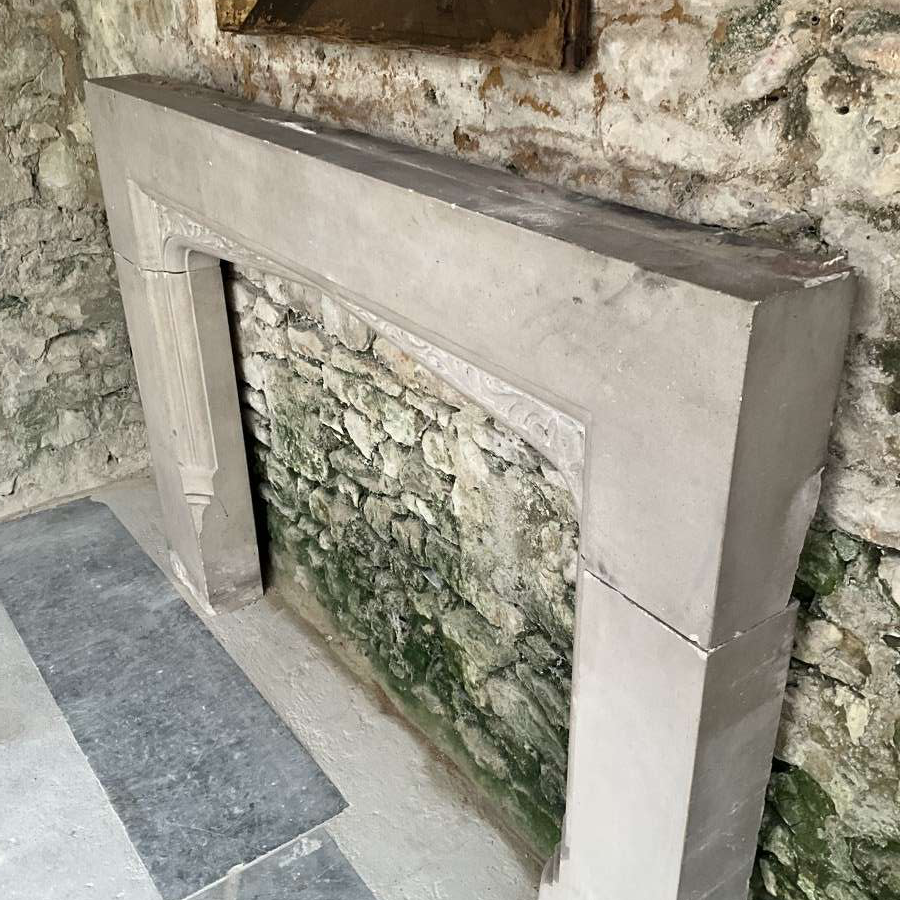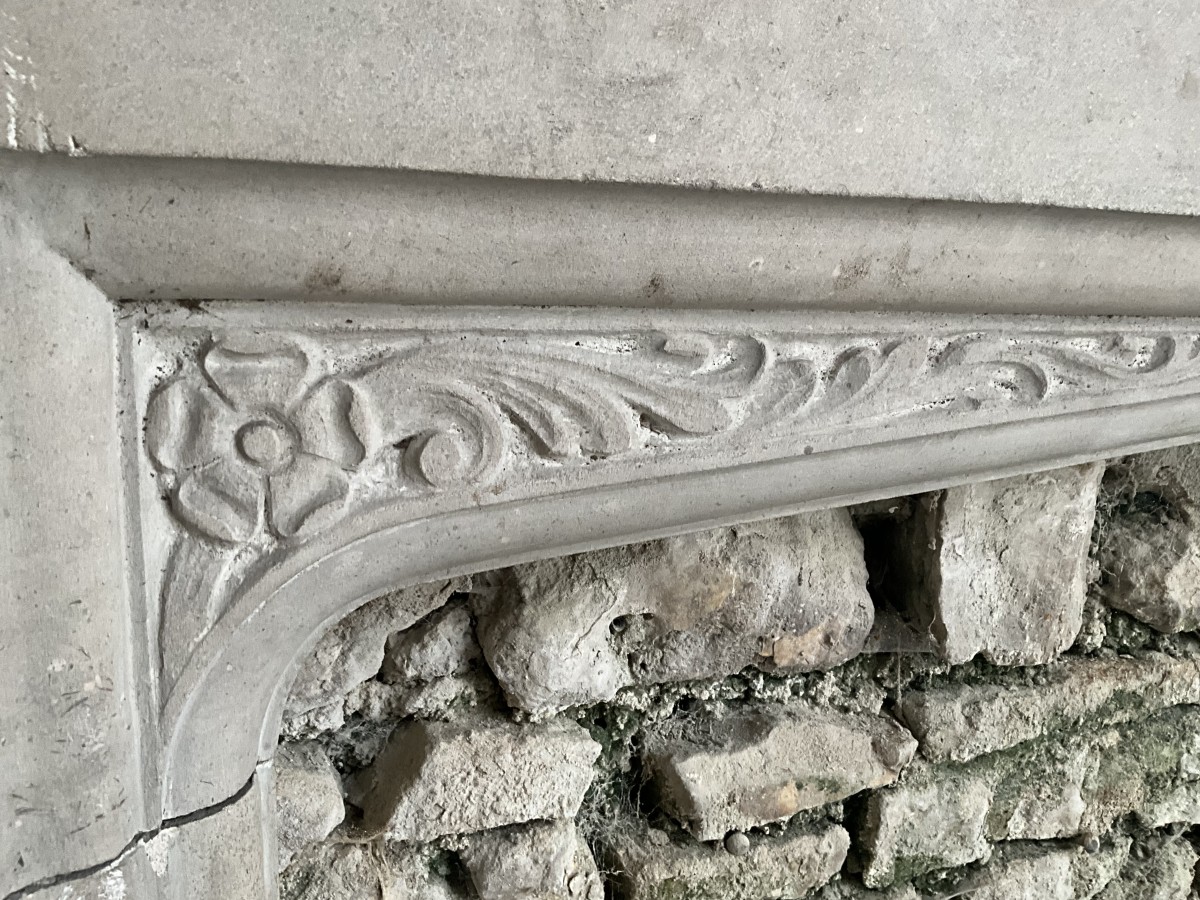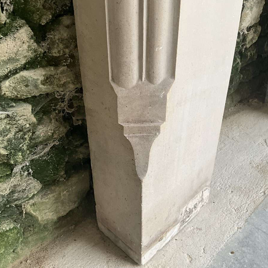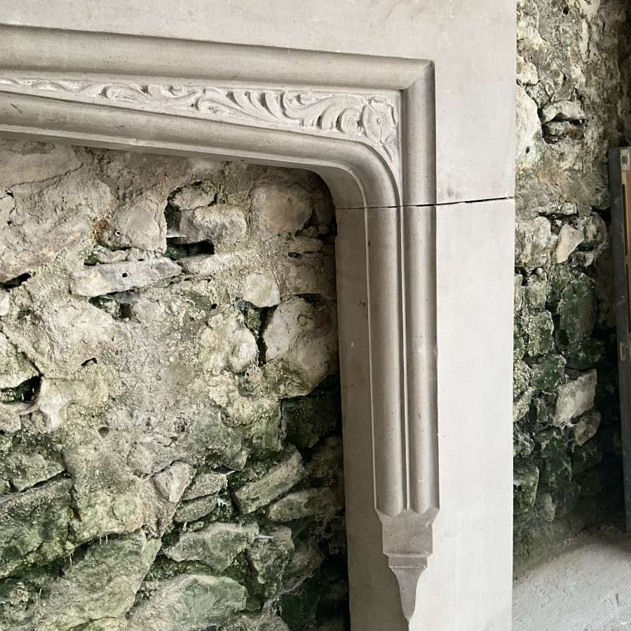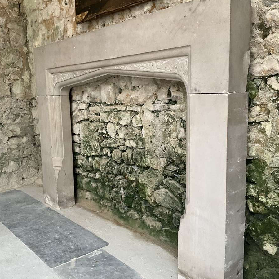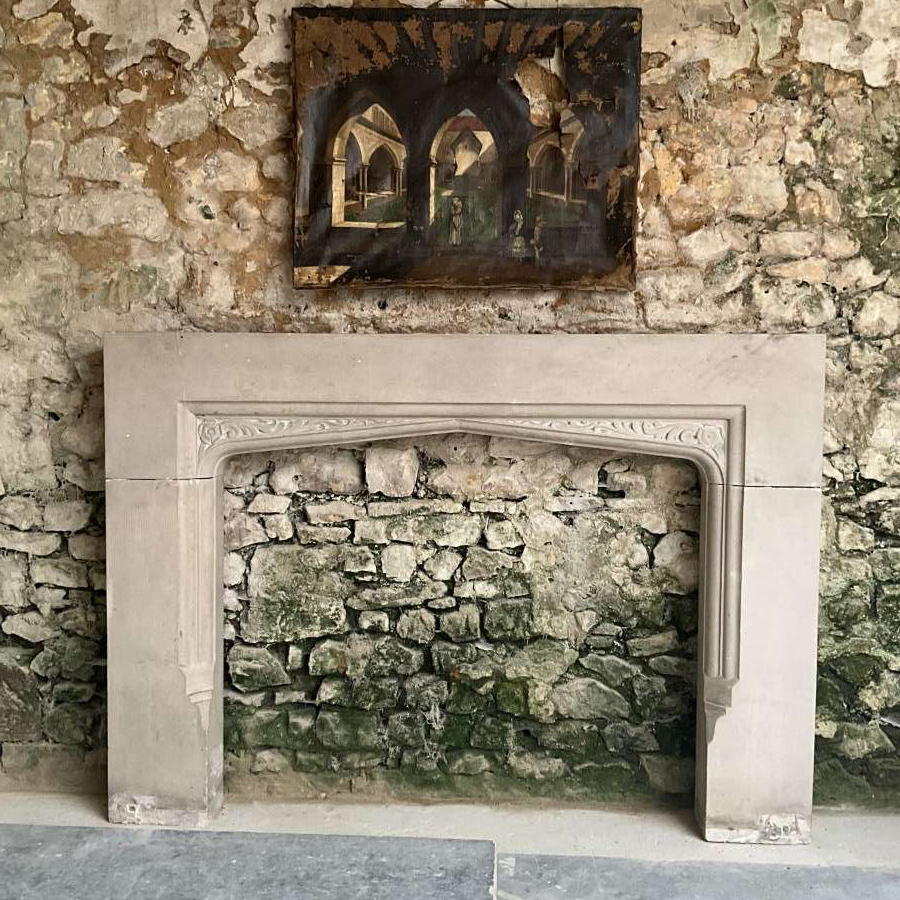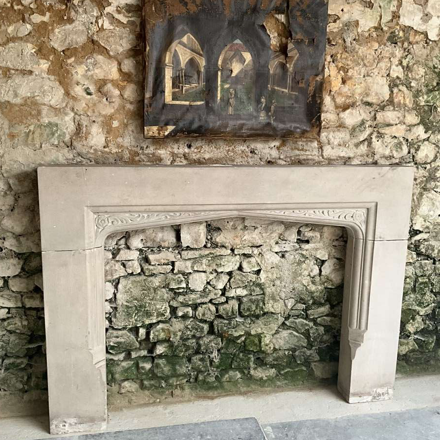 Large Antique English Portland Stone Gothic Revival Fireplace