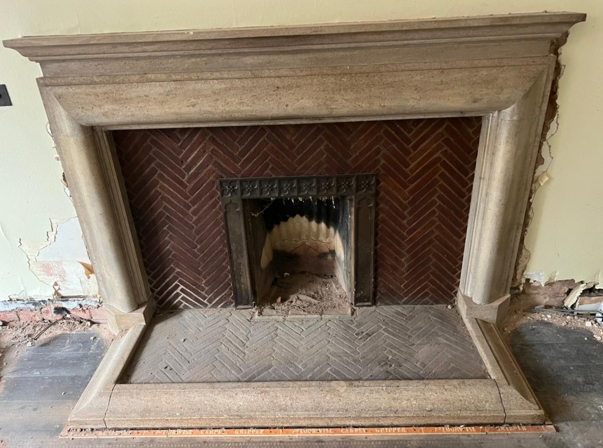 A large Ancaster bolection stone fire surround from the 19th Century. Overall size 183cm wide x 126cm tall. Arriving shortly, please message for more details.