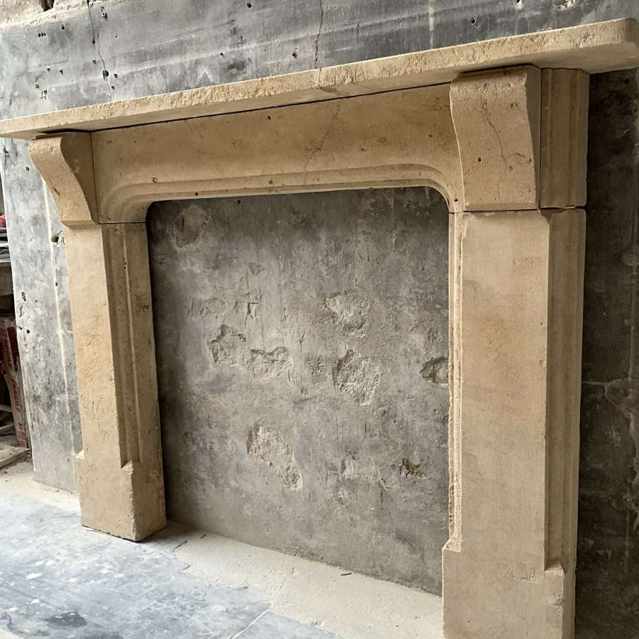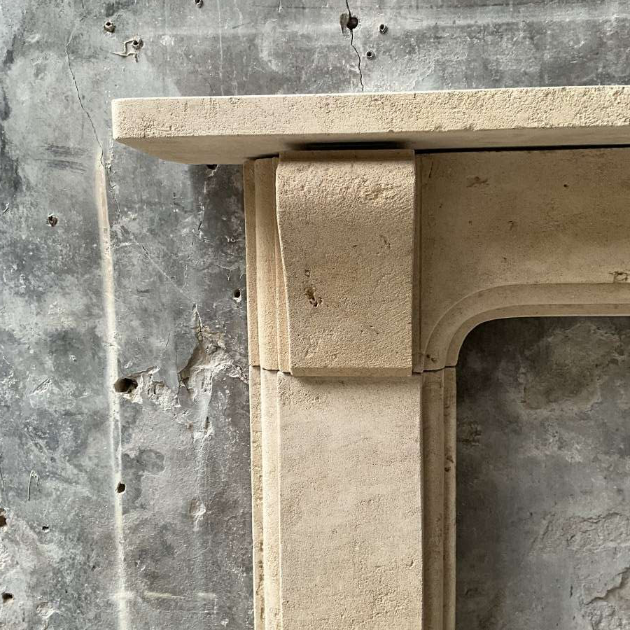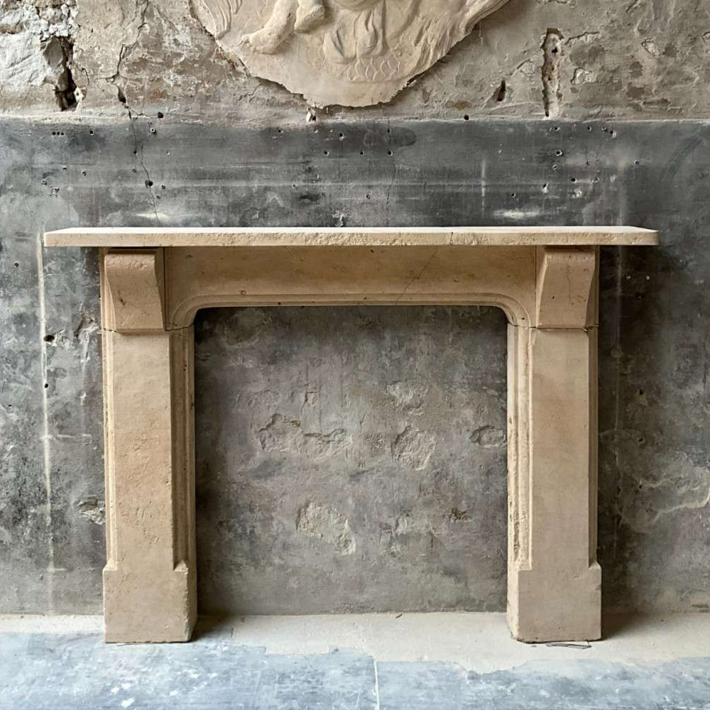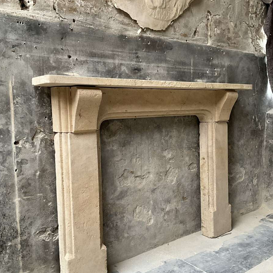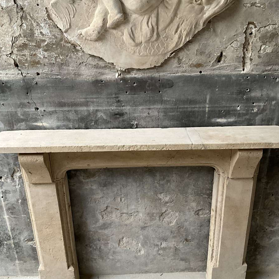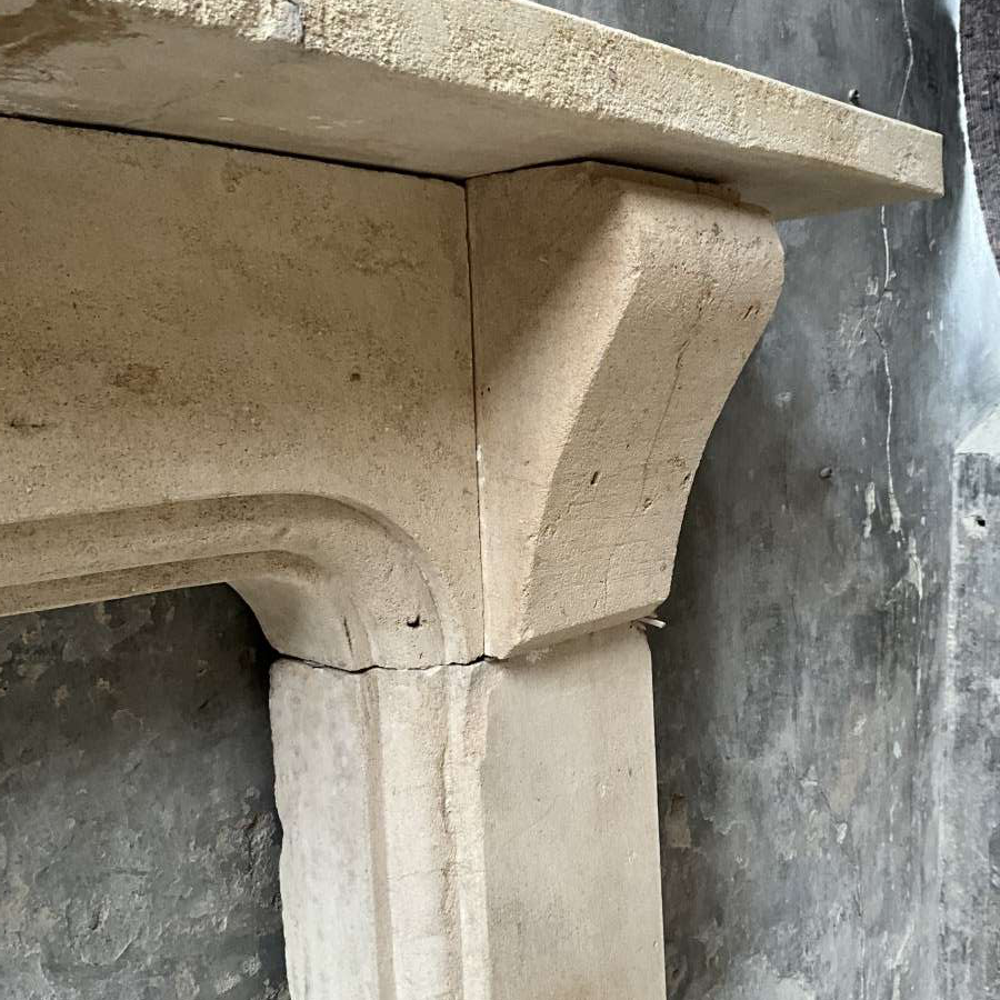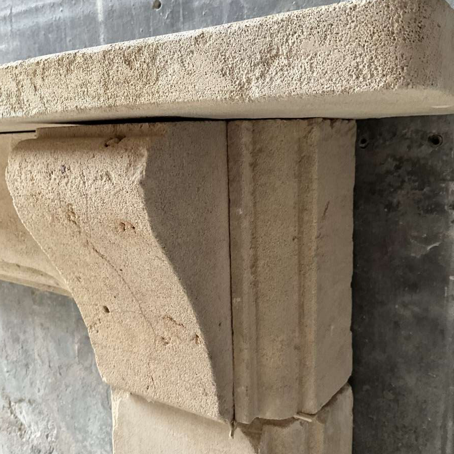 A 19th Century Cotswold stone fireplace surround. Overall width 152cm x overall height 110cm. Opening 87cm wide x 89cm tall. Depth of shelf 22cm. Good original condition with an old repair to the mantle shelf .