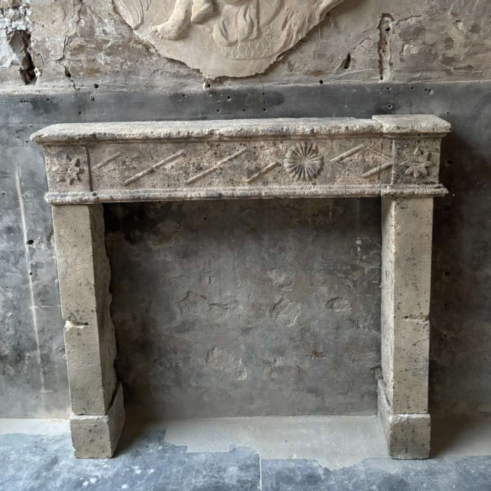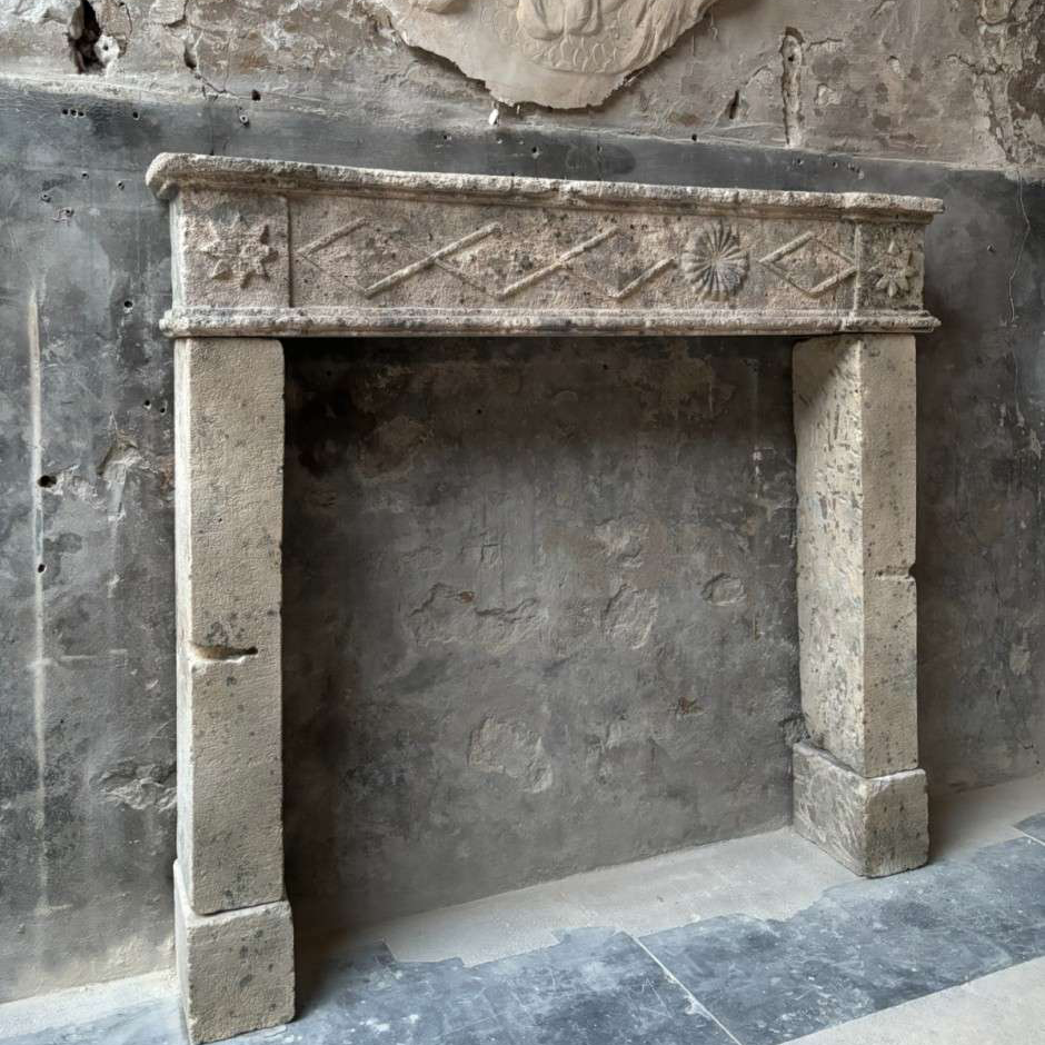 An 18th Century Italian stone fire surround with restored mantle. Overall width 140cm x overall height 128cm. Opening 107cm wide x 102cm tall. Depth of mantle 22cm. Delivery arranged at cost.
