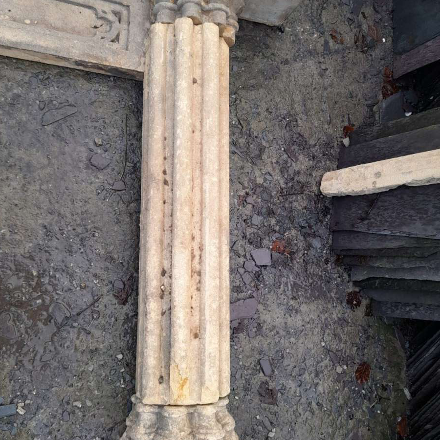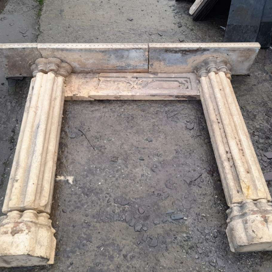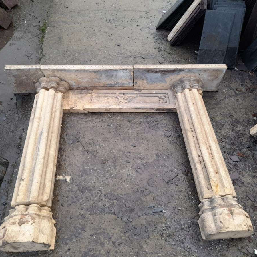 A rare 19th Century Gothic Revival Bath stone fire surround with provenance. Overall size 176cm wide x 130cm tall. Currently undergoing restoration. Please call or WhatsApp 07974 579694 for more details.